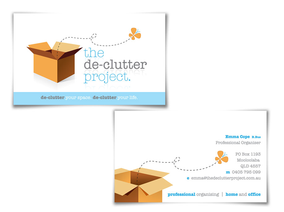 A couple of recent Mookoo designs for logo and business cards for The De-Clutter Project…