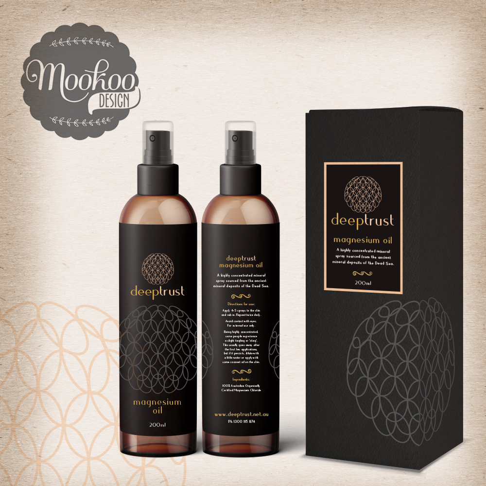 Although this unfortunately hasn’t progressed beyond concept stage (yet!) my client and I were excited about the direction that this was taking so I wanted to show the 4 concepts. These were for a new range of health and beauty products, starting with a Magnesium Oil spray. The target market was in the 35 year + range who were likely to purchase health, organic and sustainable products. The products needed to reflect these factors but also appeal as a luxurious and beautiful product to enhance a bathroom shelf.